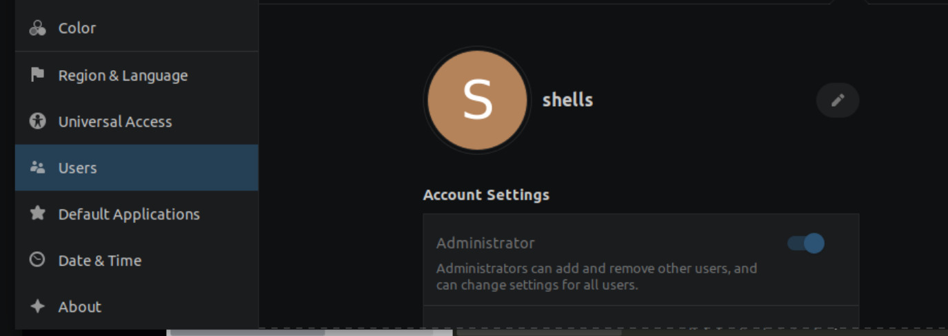 If you're using Ubuntu Linux, learning the terminal commands is the preferred way to go, but we here at Shells™ want computing to be easy for everybody. In this tutorial we'll show you how to change your password for your local account and your main administrator password. By default, Shells™ Ubuntu setups have your username added to the passwordless admin group called 'sudo' which is short for "Super User, Do" as in "Do this command as a super user (root)"