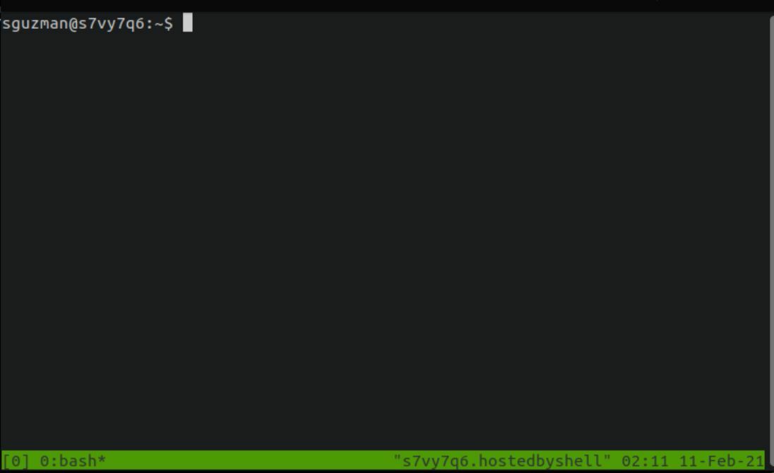 CTRL+b cThe above command will open a new terminal as you can see below in the screenshot. The new number for the bash window is highlighted at the bottom in green 0:bash 1:bash. Make sure to hold cntrl+b, release then type c. This is with all tmux commands moving forward.
