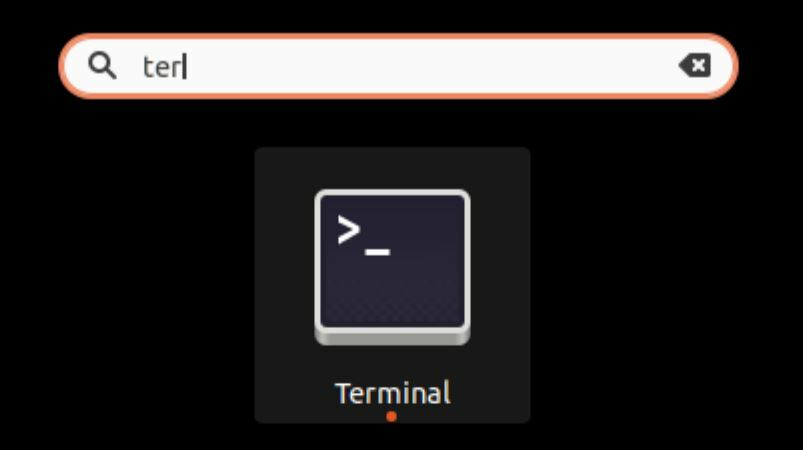 Let's go ahead and select the icon and search for the terminal in the search and then click on the terminal to open.