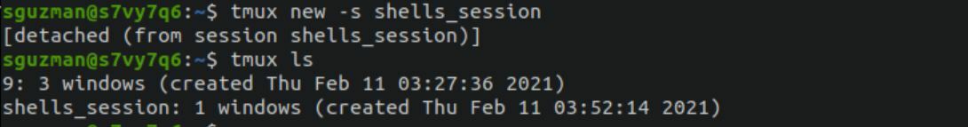 tmux new -s session_nameabove you can see the newly created session name shells_session when using tmux ls